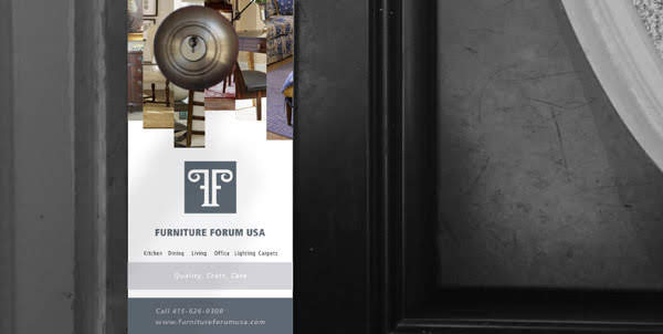 Furniture Forum’s target audience is anyone looking for high quality furniture, whether for commercial or residential purposes. The target audience is affluent and acknowledges the benefits of buying quality furniture, therefore the brand had to be perceived as trustworthy and elegant. This was achieved beginning with the simple and clean execution of the logo. The logo’s letterform is inspired from the Roman columns that make up a forum. Furniture can come in any assortment of shape, color, pattern, and material so a neutral, cool gray was chosen as the primary brand color to complement additional color palettes.